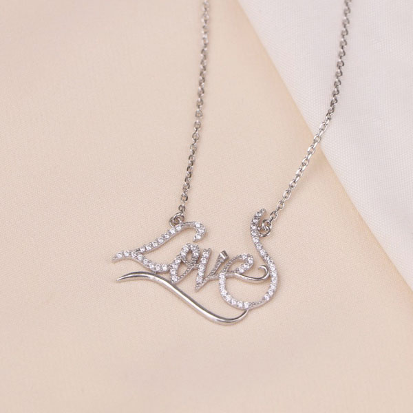 گردنبند نقره دخترانه لاو دوستت دارم کد 21911 یکی از بهترین هدیه برای کسی هست که عاشقانه دوستش دارید طراحی زیبای بینظیر لاو با نگین های درخشان زیرکنیا جلوه عالی به کار داده است نقره عیار 925 است با آبکاری طلا سفید این گردنبند نقره دارای نگینهای اتمی بسیار زیبا و درخشان میباشد که اصلا ریزشی نداردکيفيت زيورآلات در فروشگاه دريتا: