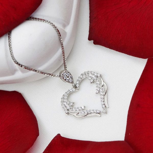گردنبند نقره قلب کد 150، نقره عیار 925 با آبکاری طلا سفید